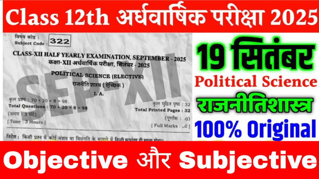 19 September Bihar Board Class 12th Half Yearly Exam Political science Paper 2025
