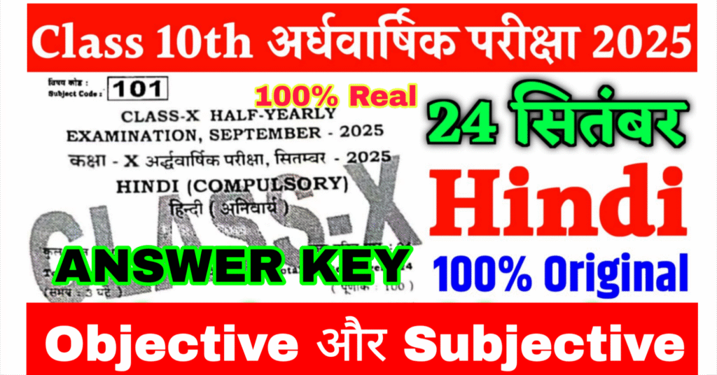 24 September Class 10th Half Yearly Exam Hindi Subjective Answer Key 2025