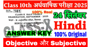 24 September Class 10th Half Yearly Exam Hindi Objective Answer Key 2025