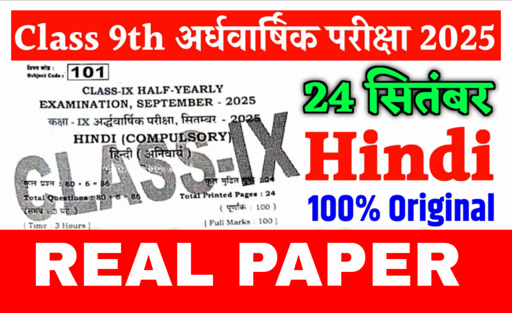 24 September Bihar Board Class 9th Hindi Half Yearly Exam Viral Question Paper 2025 24 September Bihar Board Class