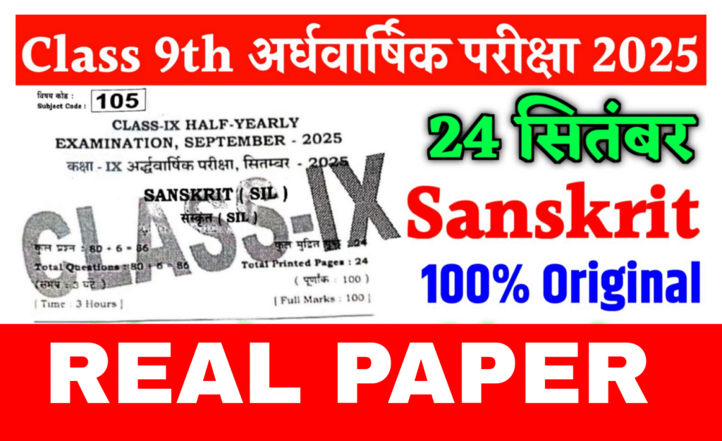 24 September Bihar Board Class 9th Sanskrit Half Yearly Exam Viral Question Paper 2025 24 September Bihar Board Class 9th